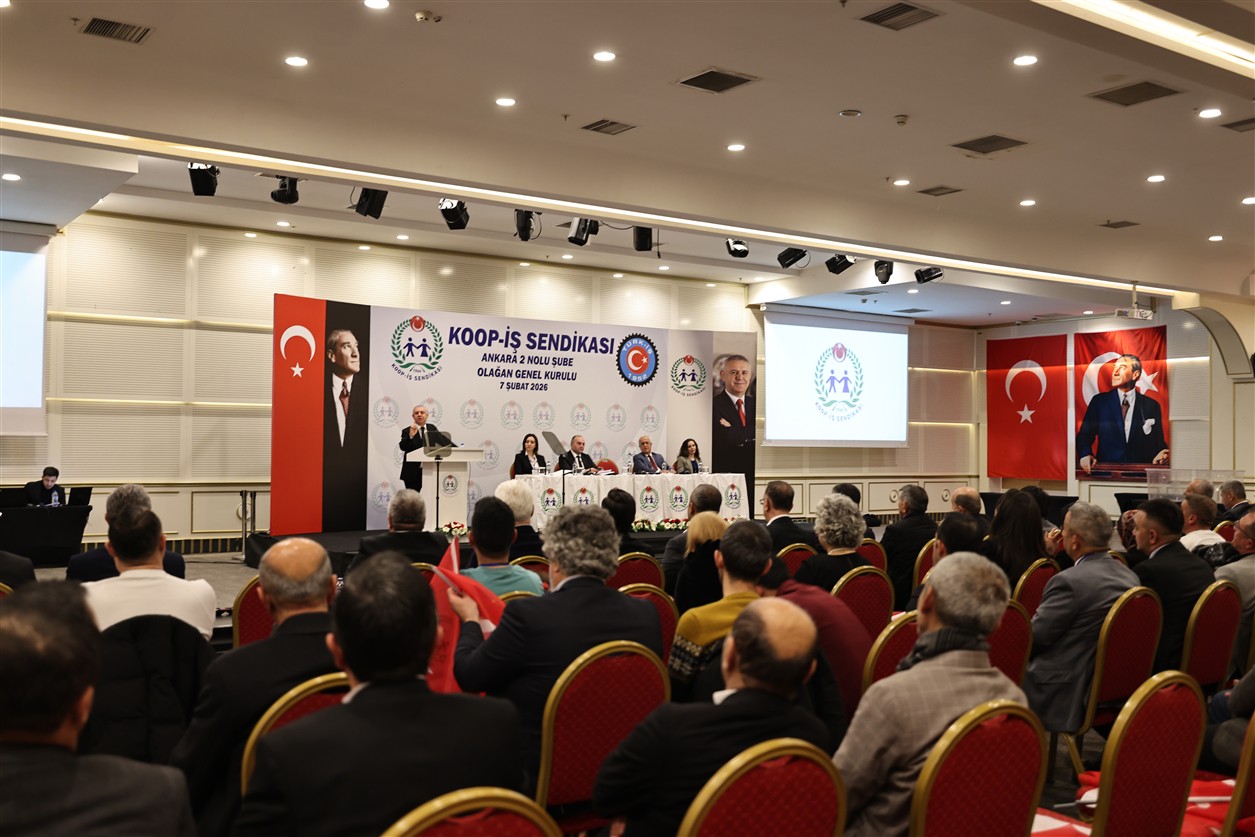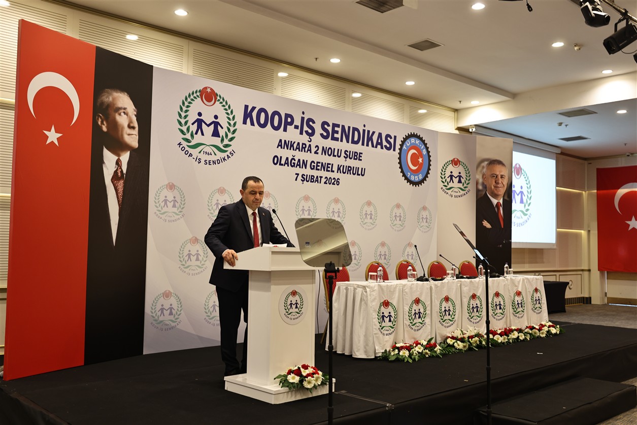 TÜRK-İŞ Genel Başkan Yardımcısı ve Koop-İş Sendikası Genel Başkanı Eyüp Alemdar, Koop-İş Ankara 2 Nolu Şube Olağan Genel Kurulu’nda yaptığı konuşmada, 2025 yılının hem dünyadaki savaşlar ve krizler hem de Türkiye’de dar ve sabit gelirli kesimleri zorlayan ekonomik koşullar nedeniyle “zorluk ve mücadelelerle geçen” bir yıl olduğunu vurguladı.