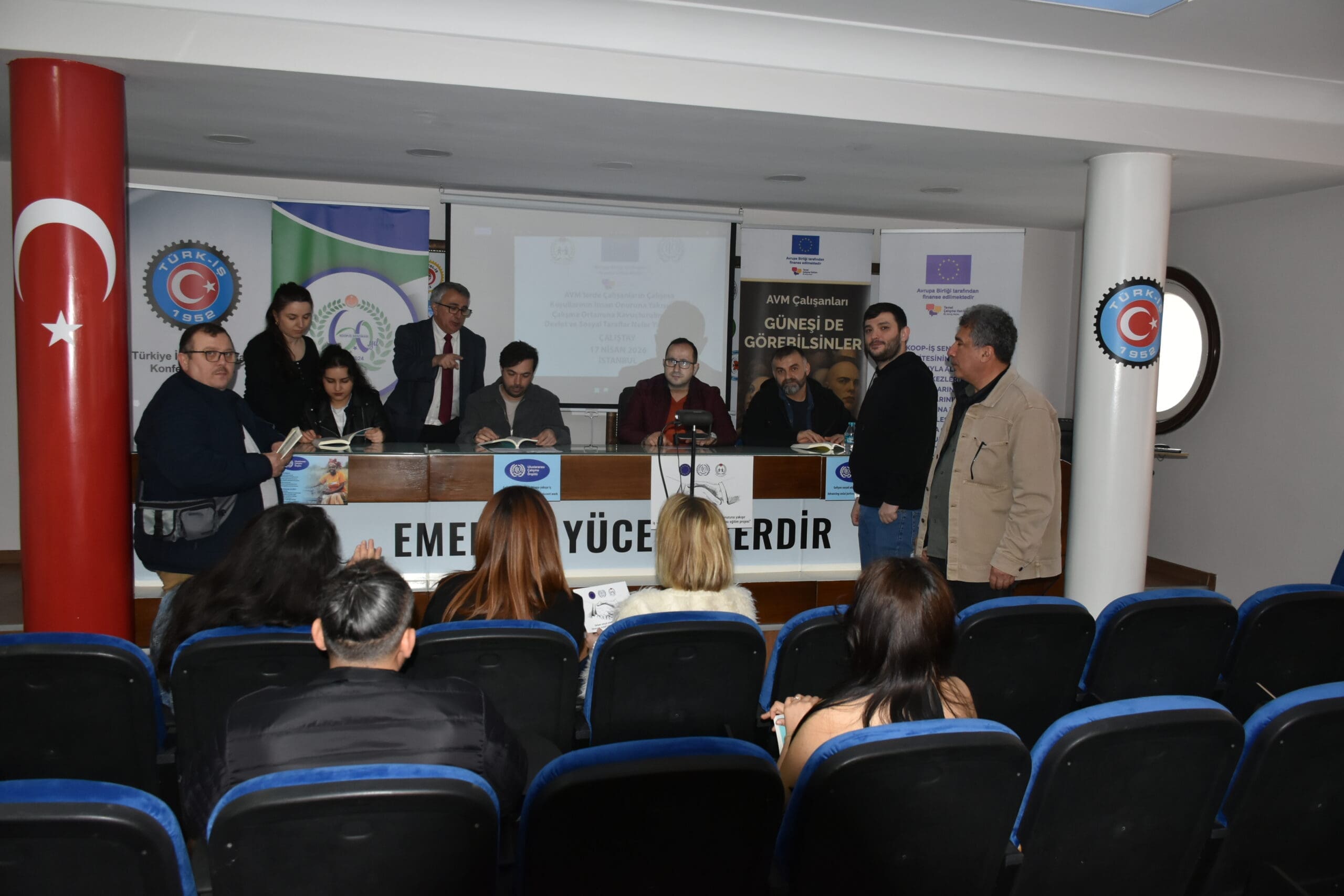 Sendikamız Koop-İş’in “Kapasitesinin Artırılması Yoluyla Alışveriş Merkezlerinde Çalışanların Çalışma Koşullarının İnsan Onuruna Yakışır İş ve İyileştirilmiş Çalışma Ortamına Kavuşturulması” Projesi kapsamında, 17 Nisan 2026 Cuma günü İstanbul’da çalıştay gerçekleştirildi.