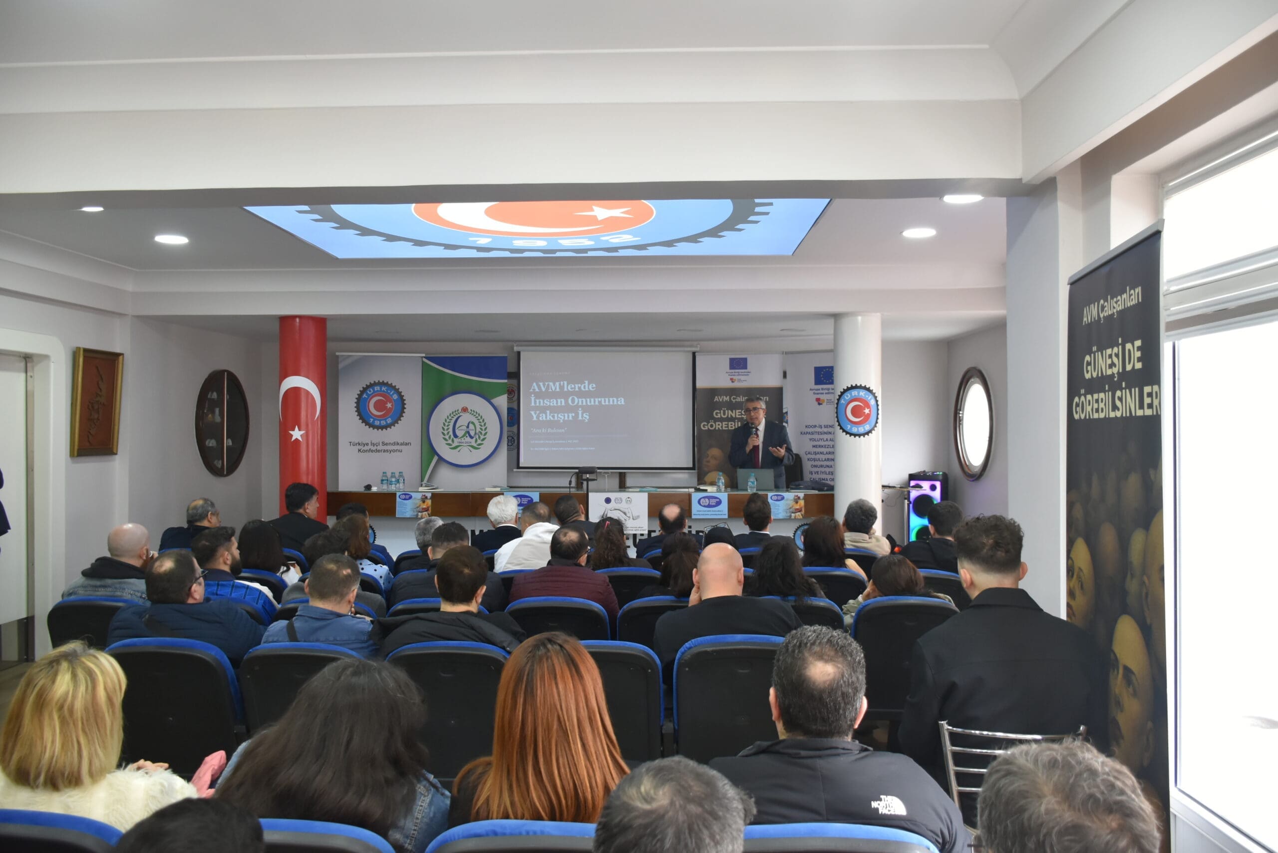 Düzenlenen çalıştaya, TÜRK-İŞ İstanbul 1. Bölge Başkanı Halil Faki Erdal, Sendikamız İstanbul 1 No’lu Şube Başkanı Aziz Hacısalihoğlu, Sendikamız İstanbul 2 No’lu Şube Başkanı Şahin Kaya ve sendikanın özel sektör üye işyerlerinde görev yapan çalışanların yanı sıra üye işyeri mağaza yöneticileri ve çeşitli sendikalardan temsilciler de katıldı. Çalıştayda, alışveriş merkezlerinde çalışanların mevcut çalışma koşulları ele alınarak, daha sağlıklı, güvenli ve insan onuruna yakışır bir çalışma ortamının oluşturulmasına yönelik değerlendirmelerde bulunuldu.