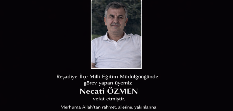 Sivas Şubemize bağlı Reşadiye ilçe MEB Müdürlüğünde görevli üyemiz Necati ÖZMEN vefat etmiştir. Merhuma Allah’tan rahmet; ailesine, ve yakınlarına başsağlığı ve sabırlar dileriz.