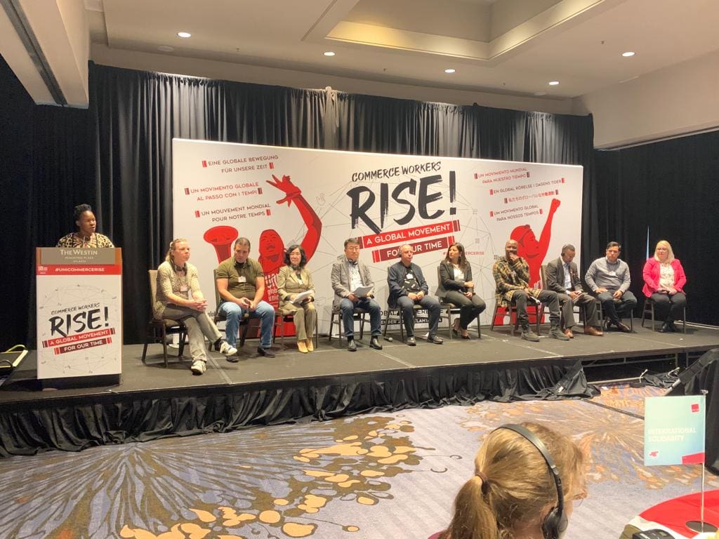 Ticaret sektöründeki işçilerin daha iyi ekonomik ve sosyal şartlar altında çalışması için 150’den fazla ülkede hizmet sektöründe teşkilatlanan işçi sendikalarını bir araya getiren UNI Global Union, 6-9 Aralık 2022 tarihleri arasında Küresel Ticaret Kongresini gerçekleştirdi. Kongreye, ticaret sektöründe önemli başarılara imza atan Sendikamız adına Genel Başkanımız Eyüp Alemdar, Genel Sekreterimiz Metin Güney ve Uluslararası İlişkiler Uzmanımız Murat Gerçek katıldı. Genel Başkanımız Eyüp Alemdar, UNI Küresel Ticaret Kongresi’nde yapılan seçimlerde, Yürütme Kurulu’na seçildi.