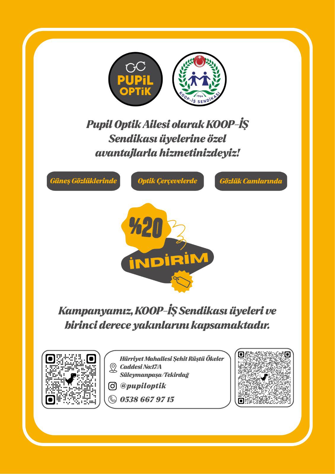 Sendikamız Tekirdağ Şube Başkanı Ziya Nur Üzmez, Tekirdağ İl merkezinde faaliyet gösteren Pupil Optik ile üyelerimiz için indirim protokolü imzaladı.