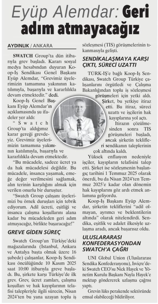 SWATCH GREVİ BASINDA