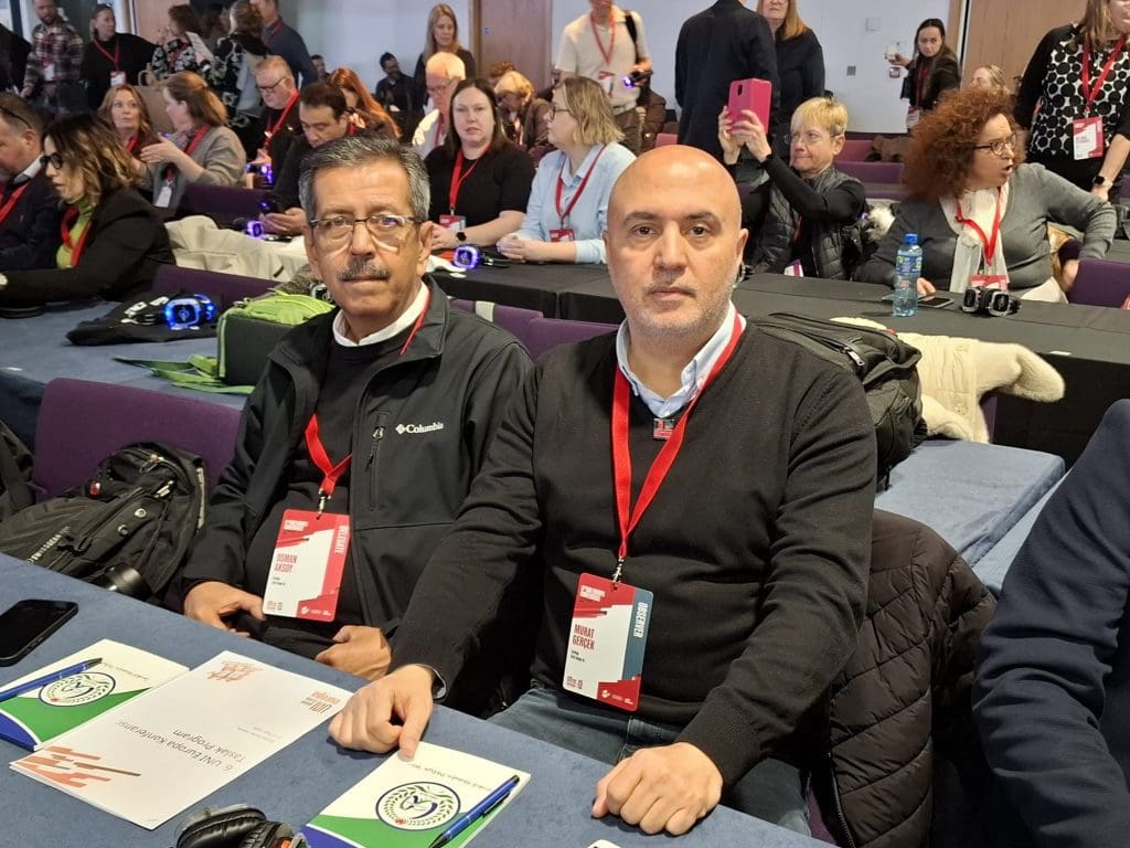 Konferansa Sendikamız adına Genel Mali Sekreter Osman Aksoy ve Sendikamız Uluslararası İlişkiler Uzmanı Murat Gerçek katıldı. Kuzey İrlanda Başbakanı Michelle O’Neill, sendikaların sosyal adalet için kritik rolüne dikkat çekerken, konuşmacılar yapay zekâ, iklim krizi ve işçi hak ve mücadelesinde kolektif eylemin önemini vurguladı.